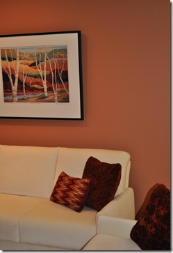 The wall color was such a hit we didn’t stop there! Adding a dining room accent wall color which continues through the shared dividing wall into the hall was a shade lighter than the living room color Benjamin Moore: Potters Clay #1221. With these color transformations existing light fixtures were looking a little shabby, so we added a new hall light lantern style pendant, dimmer switches on everything we could, and added a beautiful zebra-wood drum pendent in the Dining room! Spectacular!